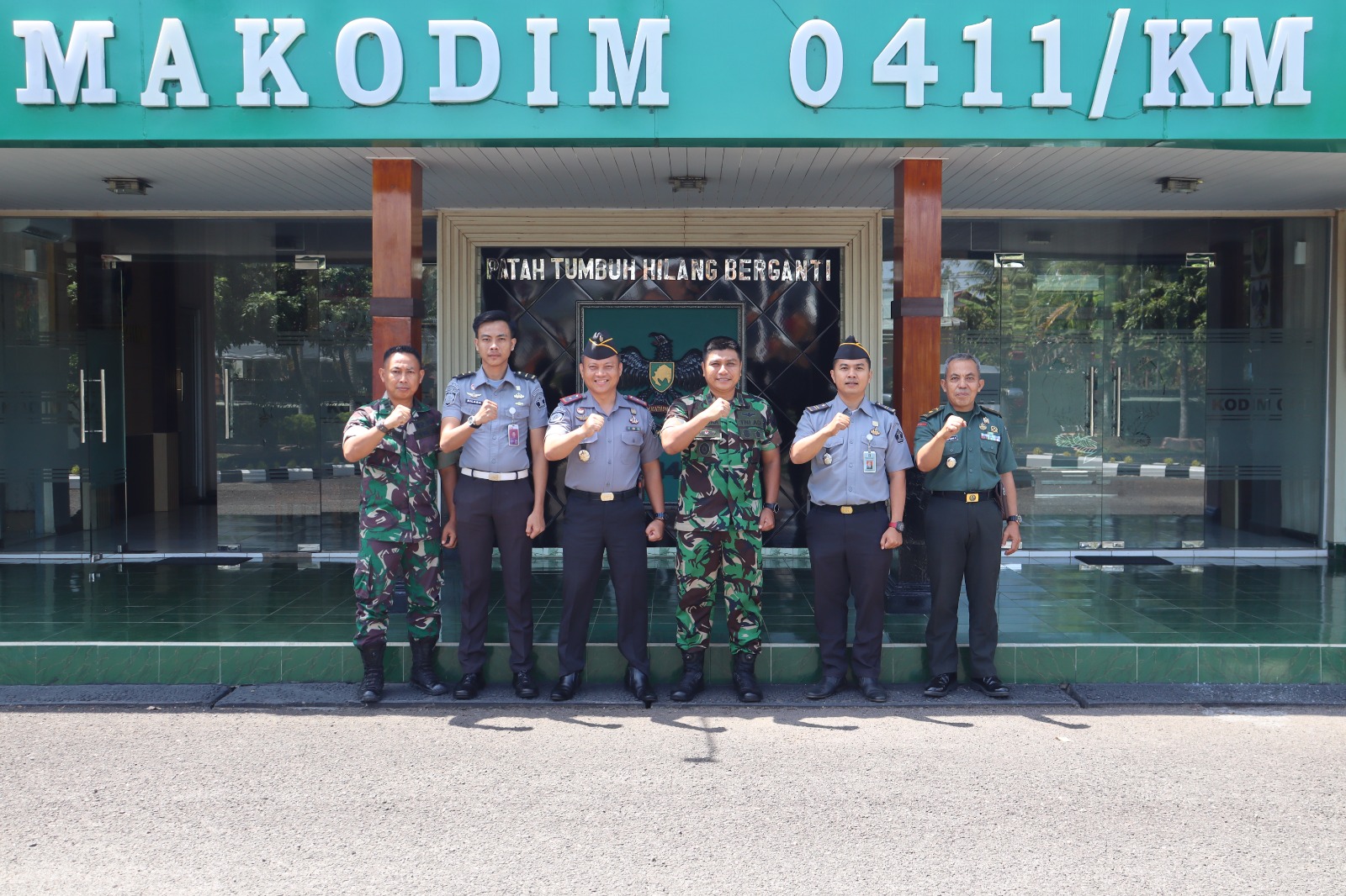 Dandim 0411/KM Letkol Arh Rendra Febrandari Suparman,S.I.P. didampingi Kasdim Mayor Inf Wawan Cahya Gunawan,S.H. menyambut langsung silaturrahmi Kepala Lapas Kelas IIB Gunung Sugih Mohamad Fadil,A.Md.IP., S.H., M.H. di ruang transit Makodim 0411/KM Jalan Veteran No. 53 Bd. 22 Kelurahan Hadimulyo Barat, Kecamatan Metro Pusat, Kota Metro. Rabu (18/09/2024)