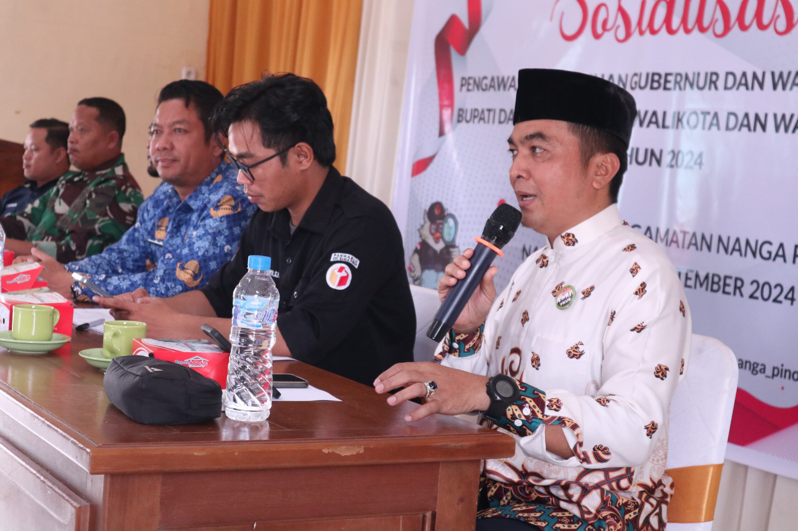 Ketua Forum Kerukunan Umat Beragama (FKUB) Kabupaten Melawi, K.H. M. Qamarul Khair, menjadi pemateri dalam acara sosialisasi pengawasan partisipatif terhadap pelaksanaan Pemilihan Kepala Daerah (Pilkada) di Melawi. Kegiatan ini digelar di Aula Kantor Camat Nanga Pinoh pada Selasa, 17 September 2024, dengan dihadiri oleh tokoh agama, penyuluh agama dari berbagai kepercayaan, serta kepala sekolah tingkat SLTA.
