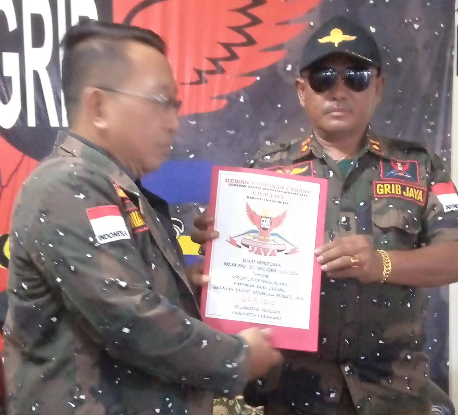 KARAWANG – JurnalPolri.Com– ketua Pimpinan Anak Cabang (PAC) Gerakan Rakyat Indonesia Bersatu (GRIB) Jaya Kecamatan Pakisjaya (Andi Anggara) resmi dikukuhkan oleh Dewan Pimpinan Cabang (DPC) GRIB Jaya kabupaten Karawang. Pengukuhan ini ditandai dengan penyerahan mandat oleh ketua DPC GRIB Jaya kabupaten Karawang, AGUNG.S.E, kepada Ketua PAC Pakisjaya Andi Anggara Terpilih dalam acara yang digelar di kantor DPC, Karawang, pada Selasa 28 Agustus 2024.berjalan lancar dan sukses