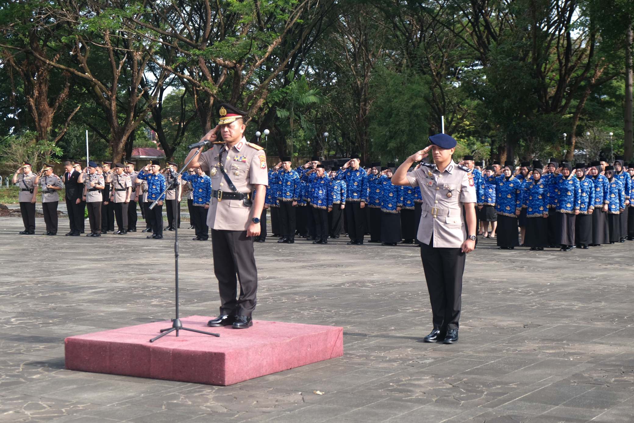 Dengan langkah tegap, Wakapolda memimpin penghormatan kepada arwah para pahlawan yang telah gugur demi kejayaan tanah air. Wajah para peserta upacara mencerminkan kekhusyukan yang dalam, seolah-olah merasakan kehadiran semangat para pejuang yang pernah membaktikan hidup dan jiwa demi Indonesia.