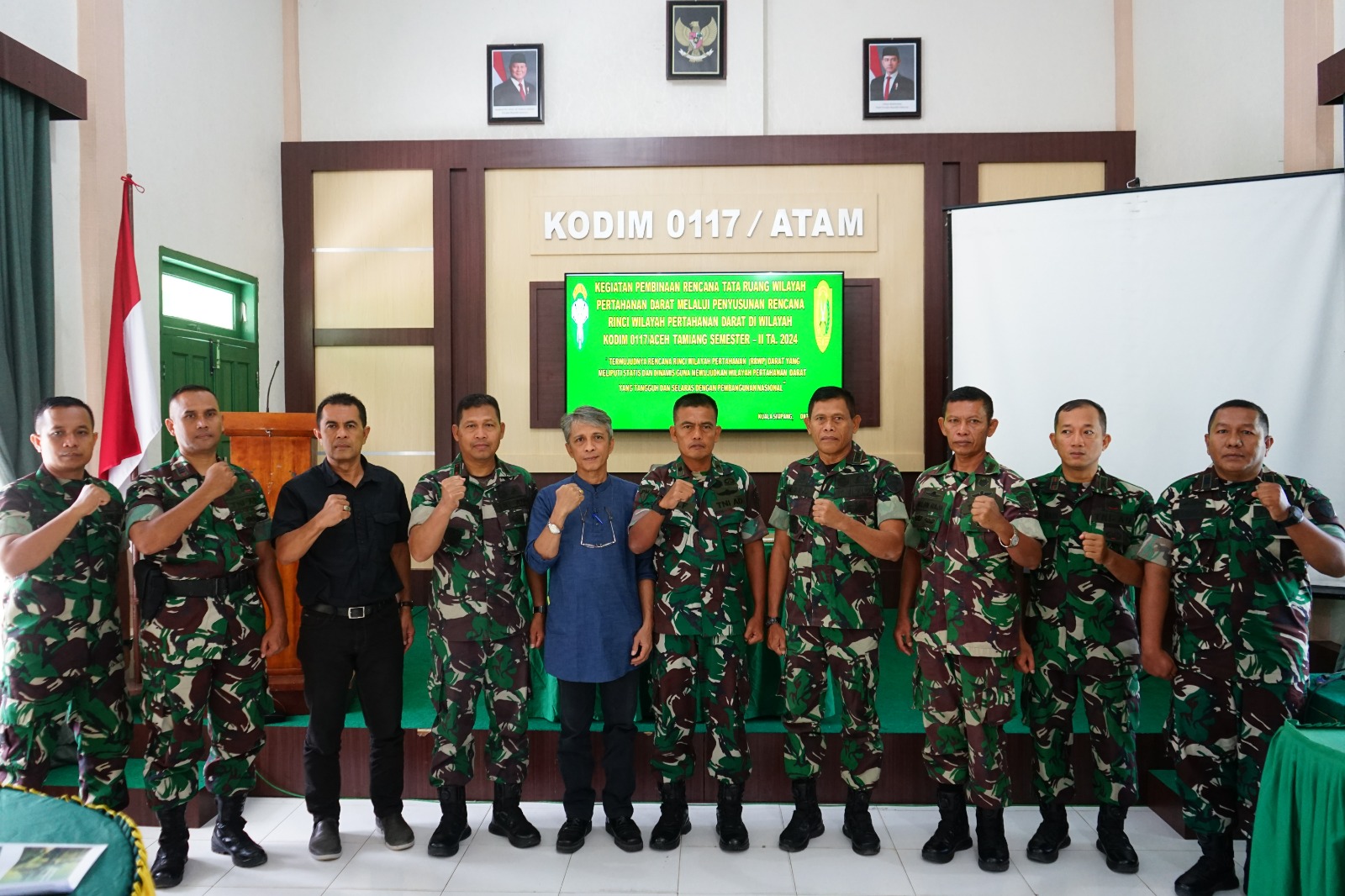 Kasdim 0117/Aceh Tamiang Mayor Cpm Lili Fitriadi dalam sambutannya yang di sampaikan oleh Assalamu’alaikum warahmatullahi wabarakatuh penghormatan kepada para Perwira Staf dan Danramil jajaran Kodim 0117/Atam, Kabid Tata Ruang PUPR Kab. Atam, Bati Tuud dan Para Babinsa jajaran Kodim 0117/Atam terimakasih atas kehadirannya dalam rangka mengikuti kegiatan Pembinaan Rencana Tata Ruang Wilayah Pertahanan Darat TA 2024 di Makodim 0117/Atam.