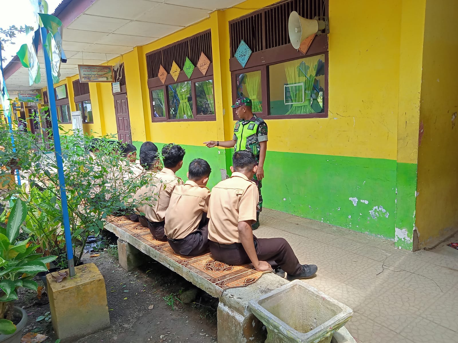 JURNAL POLRI.COM-ACEH TAMIANG-ACEH-Babinsa Koramil 03/Seruway, Kodim 0117/Aceh Tamiang Serda Budi Utomo melaksanakan Komunikasi sosial (Komsos) dan memberikan pembinaan dan motivasi kepada siswa-siswi SMPN 4 Seruway di Desa Gelung, Kecamatan Seruway, Kabupaten Aceh Tamiang. Kamis (31/10/2024)