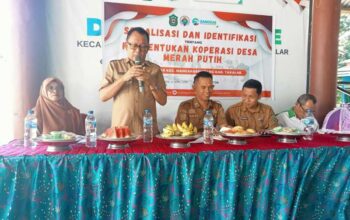 Rabu (23/4/2025) pukul 10.00 WITA, aula Kantor Desa Bangea tampak penuh oleh warga dan tokoh masyarakat yang berkumpul dalam acara Sosialisasi dan Identifikasi Pembentukan Koperasi Desa Merah Putih.