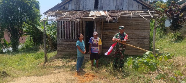 Koramil 02/Pamona Puselemba menggelar kegiatan komunikasi sosial (komsos) serentak bersama Babinsa. Mereka membagikan bendera merah putih ke rumah-rumah warga yang belum sempat memasang.