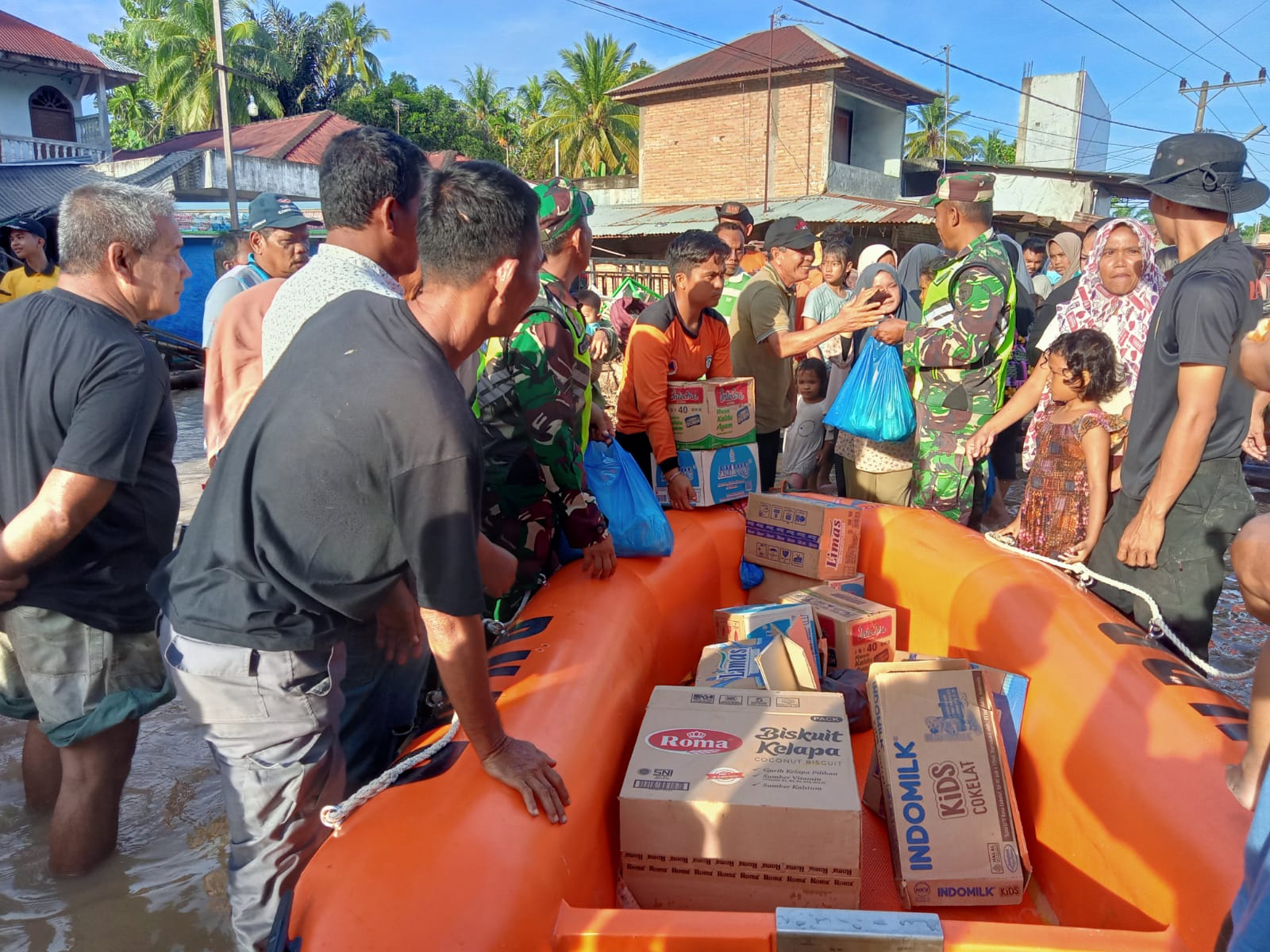 Danramil 03/Seruway Kapten Inf M Rizal mengatakan, peran nyata personel Babinsa di wilayah dalam mendukung kelancaran penyaluran bantuan dari pemerintah daerah setempat, guna membantu kesulitan warga yang terdampak banjir.