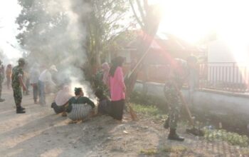 Kegiatan karya bakti Koramil 03/Maritengngae fokus pada pembersihan lingkungan untuk mencegah banjir.