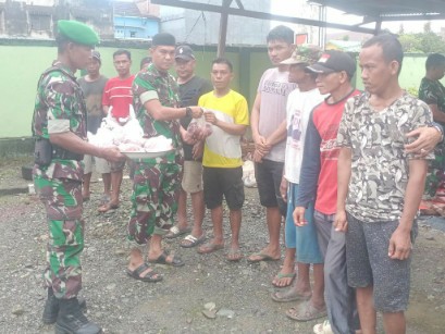 Daging hasil kurban kemudian dibagikan langsung kepada warga kurang mampu di wilayah binaan, menjadi simbol kehadiran TNI di tengah masyarakat.