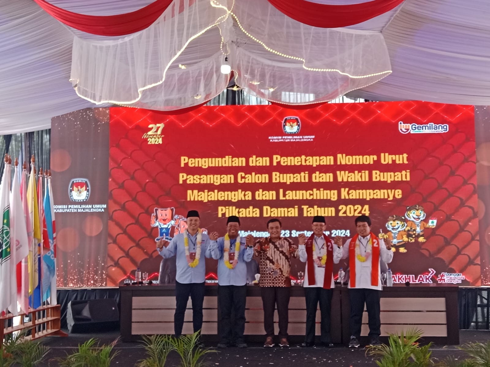 Dalam sambutannya, Ketua KPU Majalengka Teguh Fajar Putra Utama mengatakan bahwa dalam tahapan Pemilihan Kepala Daerah Tahun 2024 telah ditetapkan dua (2) pasangan Calon Bupati dan Wakil Bupati Majalengka pada Pilkada 2024, kemudian hari ini dilaksanakan Pengundian Nomor Urut Pasangan Calon Bupati dan Wakil Bupati Majalengka.