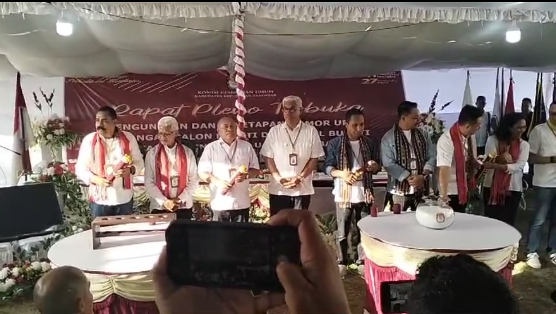 Jurnalpolri.my.id.Saumlaki 24/09/2024;Penetapan nomor urut Calon Bupati dan Wakil Bupati, di KPUD Kabupaten Kepulauan Tanimbar dihadiri oleh ke lima calon Bupati dan wakilnya beserta tim sukses dan simpatisanya masing-masing di Kantor KPUD Kepulauan Tanimbar.