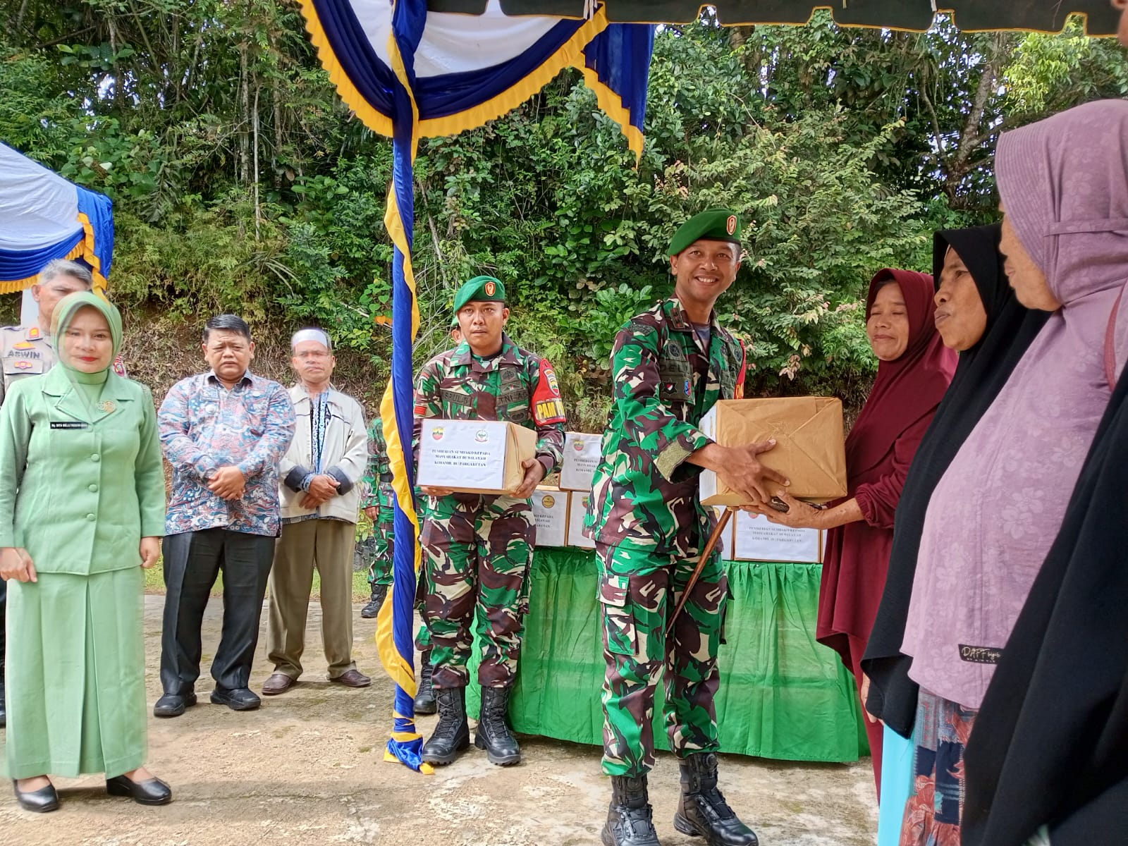 Kedatangan kami di sini dalam rangka silaturrahmi dengan pasukan sekaligus bertatap muka juga menyerahkan paket sembako secara langsung kepada masyarakat,berhubung saya Masih baru menjabat tutur pak ” Dandim”.