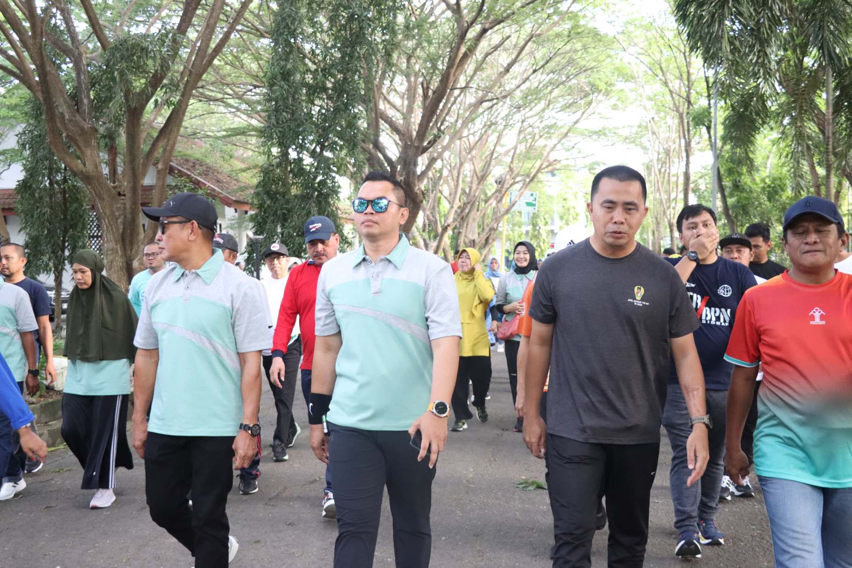 Pesannya menggema di antara ratusan peserta, membakar semangat mereka untuk mengawali rute gerak jalan santai.