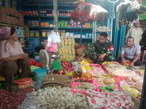 Serma Afzalul Rahman berdialog langsung dengan para pedagang dan pembeli untuk mendapatkan informasi akurat mengenai situasi pasar.