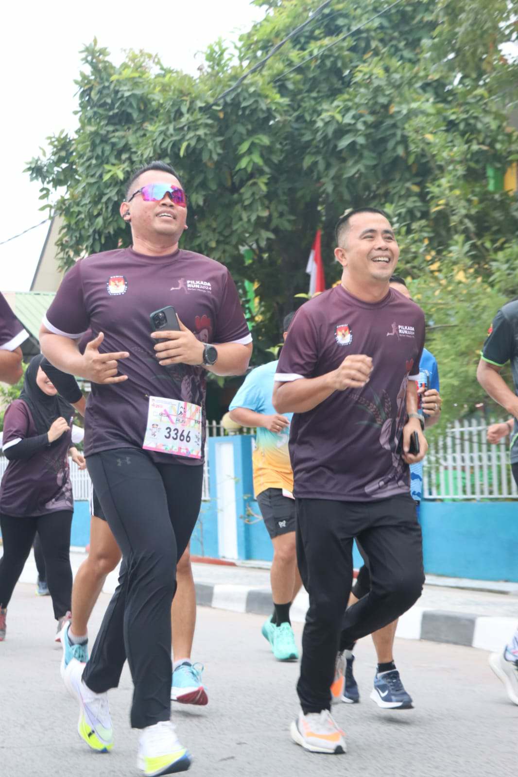 Dengan penuh semangat, Kapolres bersama Dandim dan Ketua KPU memimpin jalannya lari bersama dengan diikuti ribuan peserta dari berbagai kalangan, mulai dari anak muda hingga para lansia, turut serta memadati rute yang telah disiapkan.