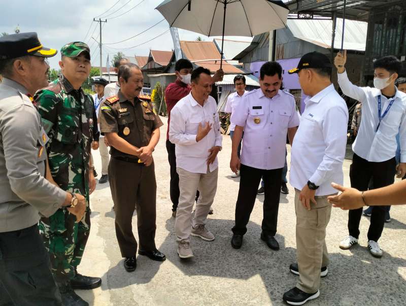 Di bawah sinar matahari yang terik, Letkol Awaloeddin berdiri berdampingan dengan Mayjend TNI (Purn) Dr. Marga Taufiq, S.H., M.H., Wakil Dirut Perum Bulog RI, dan Dr. Ns. H. Basra, Pj. Bupati Sidrap.
