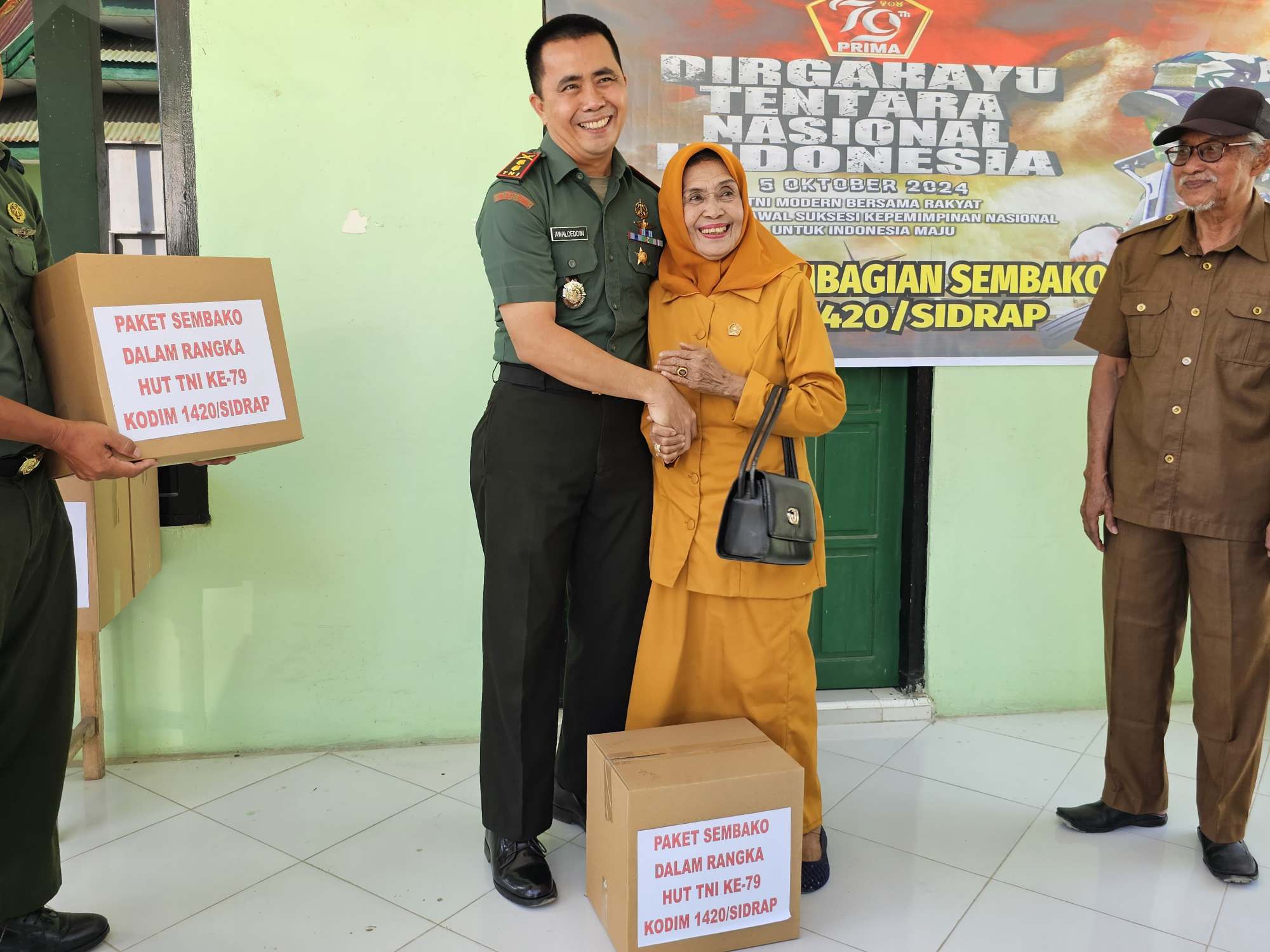 Salah satu momen yang paling mengharukan adalah pembagian paket sembako kepada para veteran dan warakawuri. Langsung dipimpin oleh Letkol Inf Awaloeddin, S.I.P. (Dandim 1420/Sidrap), acara ini berlangsung penuh kehangatan dan kekeluargaan.
