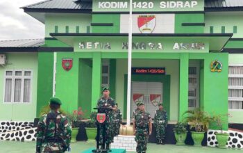 Sidrap, JURNALPOLRI.MY.ID — Komandan Kodim (Dandim) 1420/Sidrap, Letkol Inf Awaloeddin, S.I.P., memimpin upacara bendera yang digelar pada Senin pagi, (5/5/2025), di Lapangan Upacara Kodim 1420/Sidrap, Jl. Jend. Sudirman, Kelurahan Majjelling Wattang, Kecamatan Maritengngae, Kabupaten Sidrap.