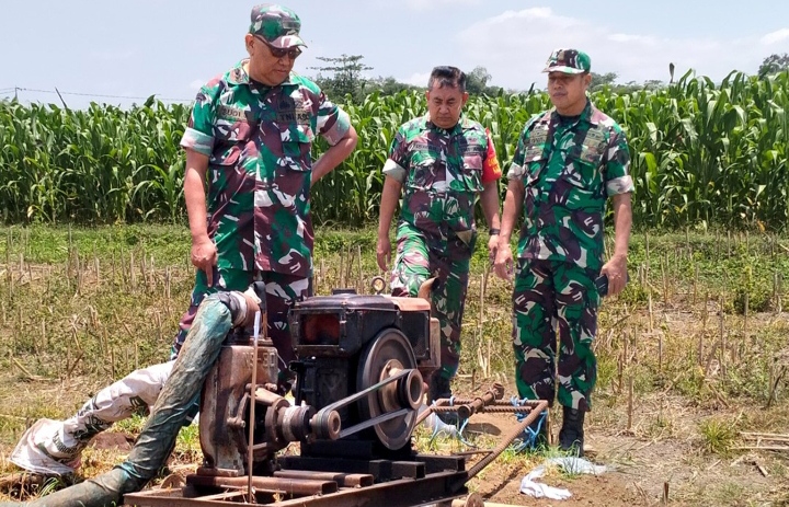 Selama kunjungan tersebut, Letkol Inf Budi Santoso berkesempatan untuk meninjau langsung penggunaan mesin pompa air yang digunakan untuk pengairan sawah, khususnya lahan yang ditanami jagung.
