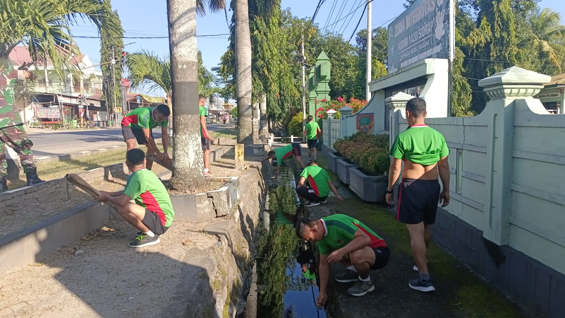 JURNALPILRI.MY.ID, Sidrap – Untuk mewujudkan lingkungan kerja yang bersih, rapi, indah, dan sehat, anggota Makodim 1420/Sidrap yang dipimpin oleh Kapoktuud Peltu Tenrisau melaksanakan kegiatan pembersihan pangkalan di sekitar Makodim, Jl. Jend. Sudirman, Kelurahan Majelling Wattang, Kecamatan Maritengngae, Kabupaten Sidrap, pada Kamis (18/07/2024).