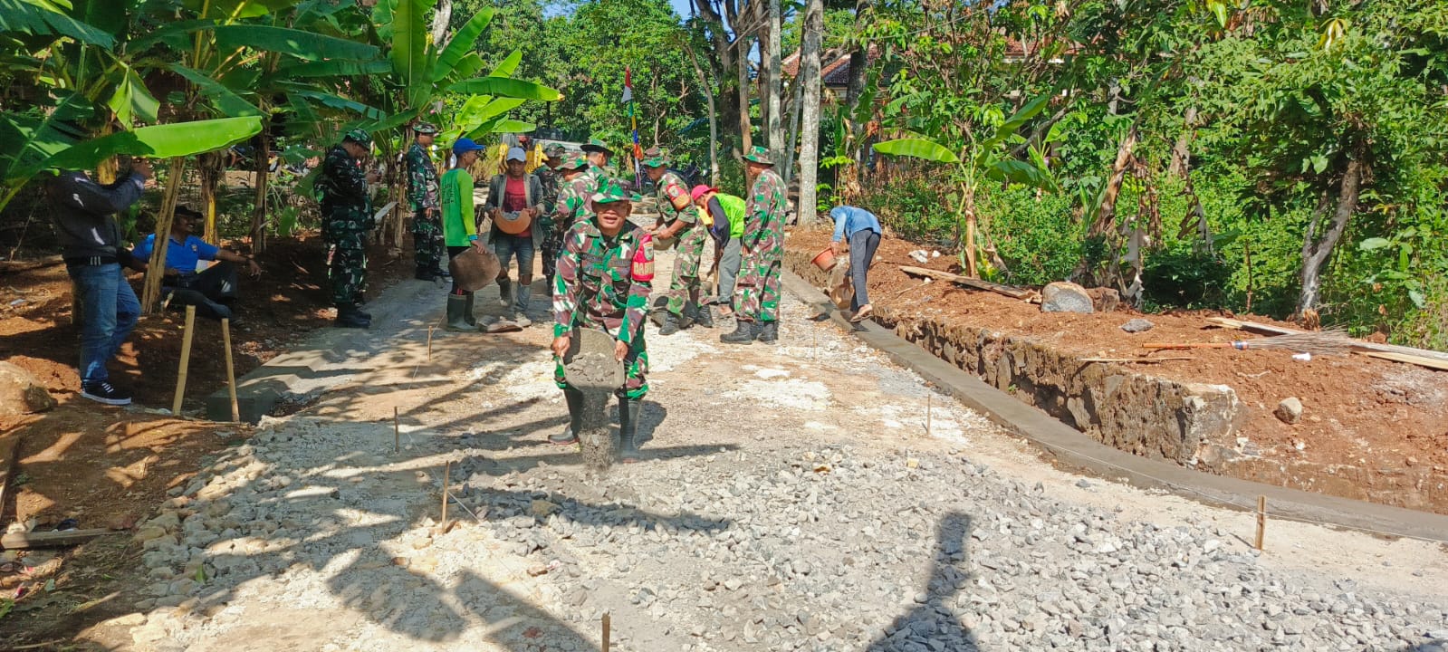 Sertu Heri Babinsa Jati Pancur menyampaikan “Pembangunan rabat beton ini akan sangat bermanfaat bagi warga, terutama bagi saya yang mempercepat laju jalan untuk bersosialisasi dan anjangsana dengan warga binaan.