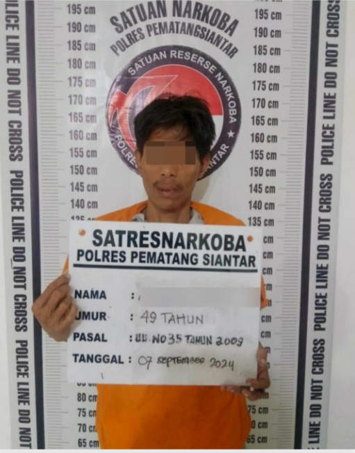 Kapolres Siantar AKBP Yogen Heroes Baruno SH, SIK melalui Kasat Resnarkoba AKP JH. Pasaribu SH, MH pada hari Senin (9/9/2024) mengatakan pria itu berinisial AF (49) warga Jalan Siak Kelurahan Martoba Kecamatan Siantar Utara Kota Pematangsiantar.