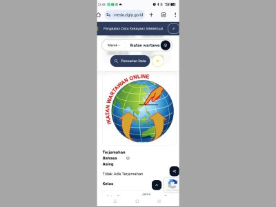 Tangkapan layar data pendaftaran merek Ikatan Wartawan Online di situs DJKI.