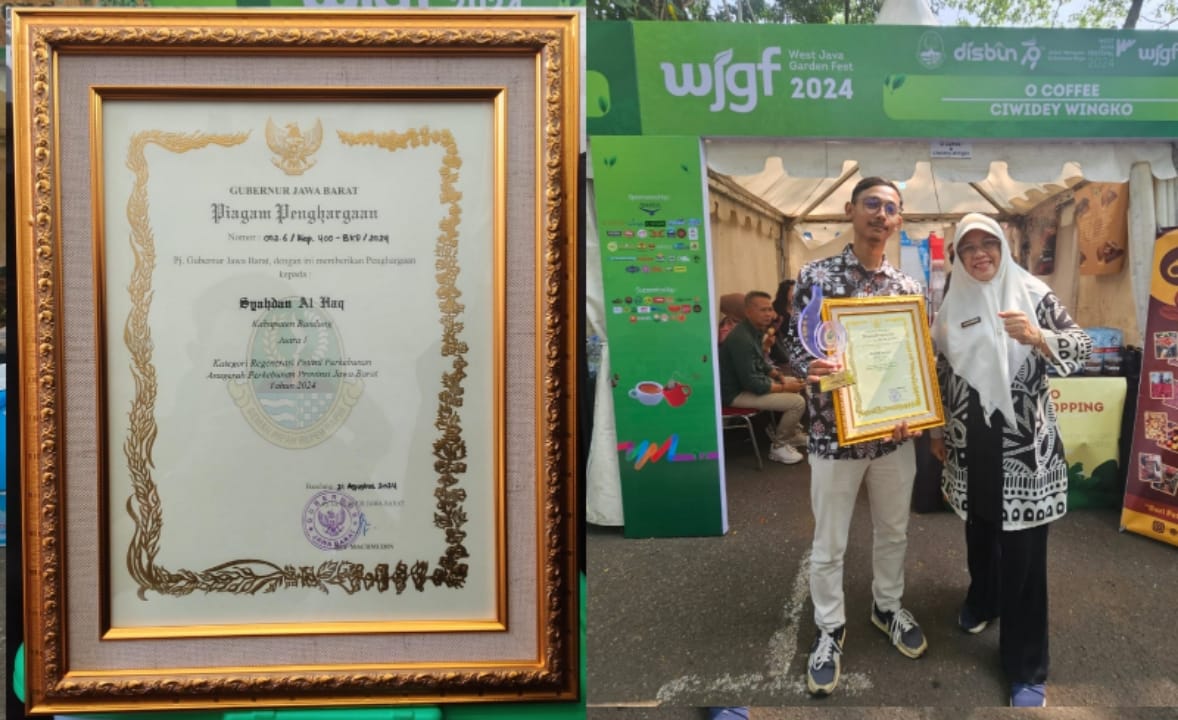 BANDUNG. – Jurnalpolri.com, Petani kopi muda asal Kecamatan ArjasariKabupaten Bandung, Syahdan Al Haq, menerima Anugerah Perkebunan Provinsi Jawa Barat Tahun 2024. Syahdan didapuk menjadi Juara 1 Kategori Regenerasi Petani Perkebunan.