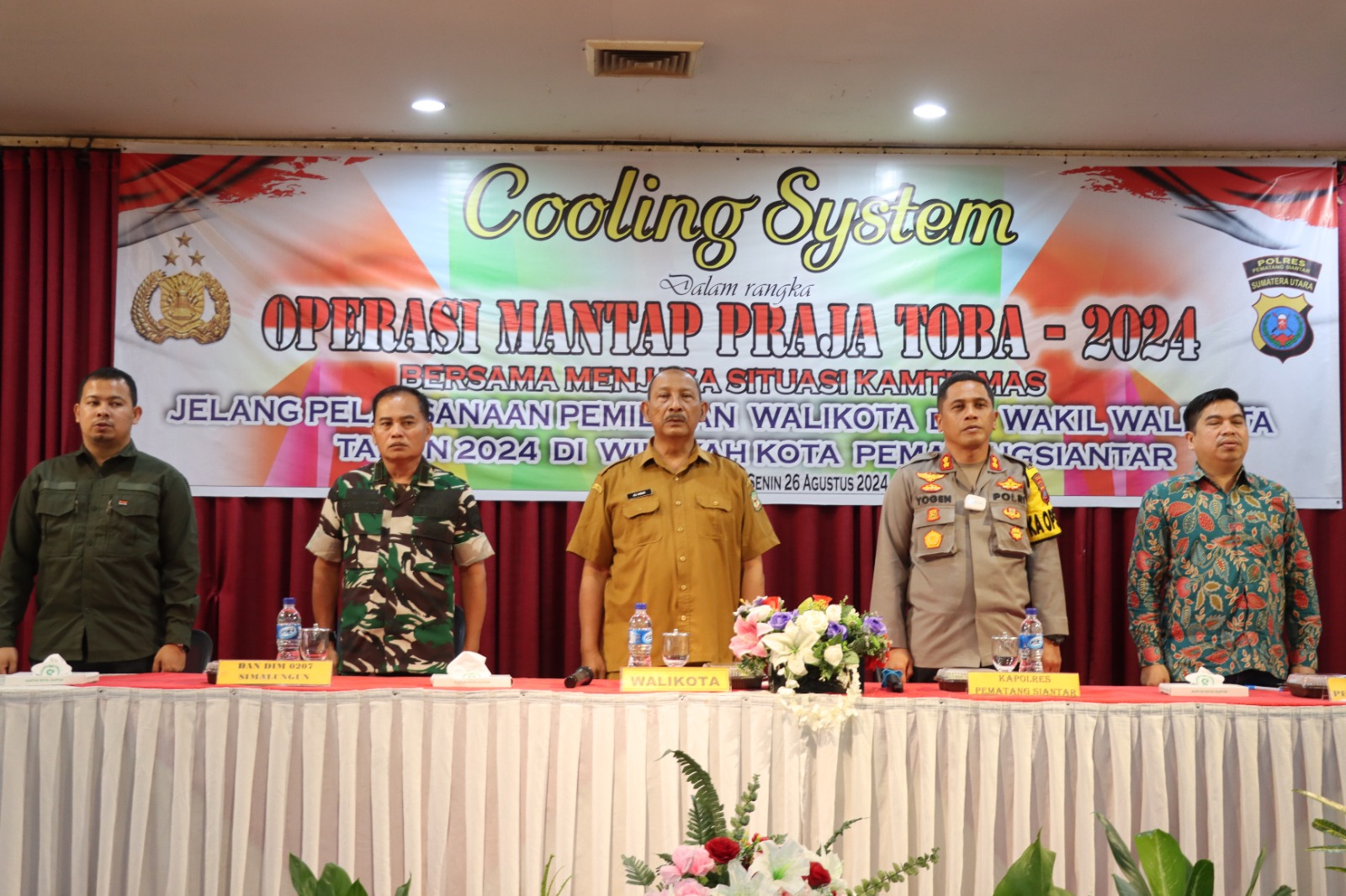 JP.PEMATANG SIANTAR-SUMATERA UTARA. Kapolres Pematangsiantar AKBP Yogen Heroes Baruno SH, SIK Pimpin Pelaksanaan Cooling System Dalam Rangka Operasi Mantap Praja Toba 2024 yang juga dirangkai menjaga situasi jelang pelaksanaan Pemilihan Walikota dan Wakil Walikota diwilayah Kota Pematangsiantar.