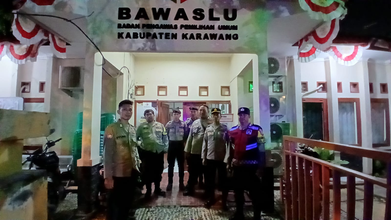 JP Polres Karawang – Padal Polsek Karawang Kota Ipda Dimas Andri Tri Kurniawan beserta anggota lainnya mengecek keamanan di Kantor Bawaslu Kabupaten Karawang saat melaksanakan patroli prekat, dalam rangka Ops Mantap Praja, Jumat (25/10/2024).