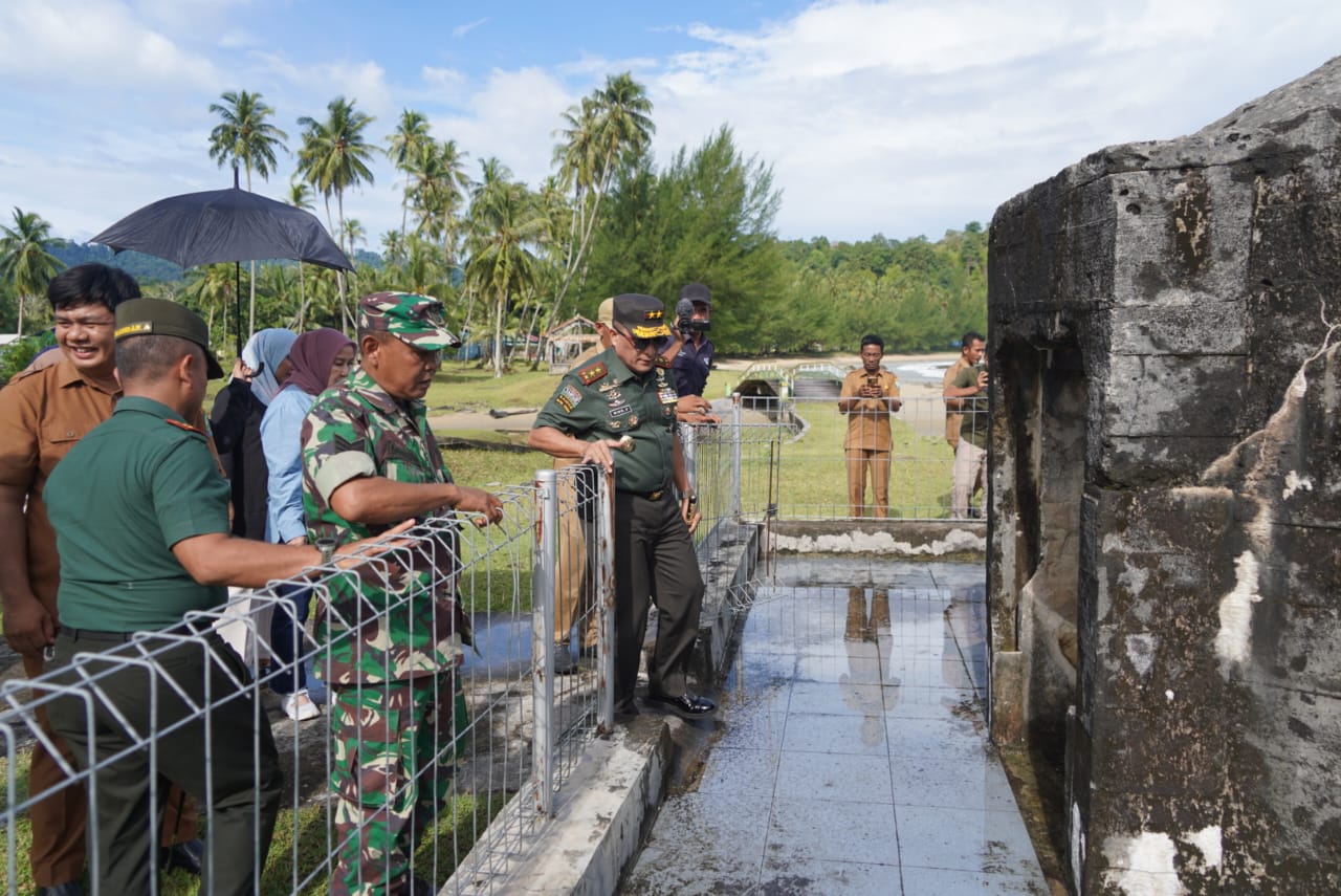 JURNAL POLRI.COM-SIMEULUE-ACEH-Setelah mengunjungi Pulau Simeulue Cut, Kabupaten Simeulue, Panglima Komando Daerah Militer Iskandar Muda (Pangdam IM), Mayor Jenderal TNI Niko Fahrizal, M.Tr (Han), yang didampingi Ibu Ketua Persit Kartika Chandra Kirana Daerah Iskandar Muda, Ny. Eva Niko Fahrizal, serta rombongan, mengunjungi salah satu situs bersejarah peninggalan masa pendudukan Jepang, yaitu benteng di Desa Naibos, Kecamatan Teupah Barat, pada Senin (23/09/24).