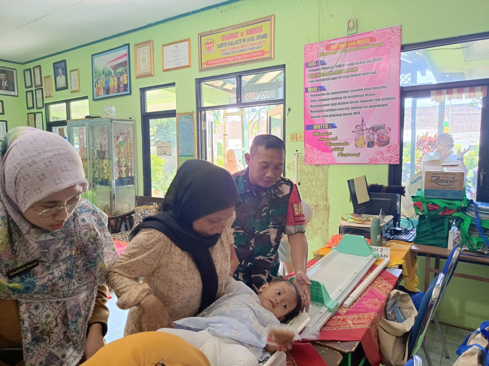 Hal tersebut telah dilaksanakan oleh Babinsa Kel. Kesambi Koramil 1401/Kesambi Kodim 0614/Kota Cirebon Serda Susilo, dalam melaksanakan pendampingan kegiatan Posyandu Mawar, bekerja sama dengan Tenaga Kesehatan (Nakes) dari UPT Puskesmas Kesambi untuk melakukan pengecekan kesehatan Balita. Kegiatan berlangsung di Baperkam RW.06/Asrama Kesambi Kel. Kesambi Kec. Kesambi Kota Cirebon.(Rabu, 21/9/24)