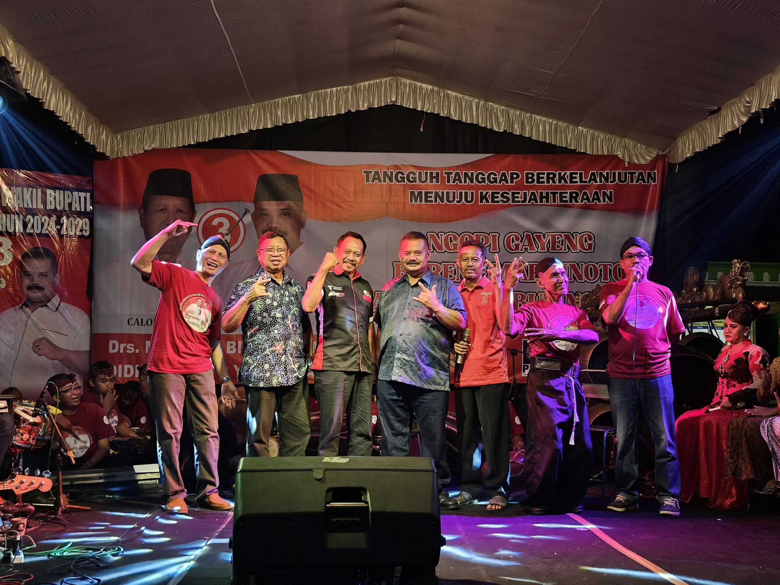 Paslon Maryoto Bhirowo dan Didik Girnoto Yekti hadir di tengah-tengah warga untuk memberikan dukungan langsung kepada Timnas Indonesia. Kehadiran mereka disambut antusias oleh masyarakat yang sudah berkumpul sejak sore hari di lapangan desa. Acara ini juga menjadi ajang silaturahmi dan kampanye bagi paslon nomor 3.
