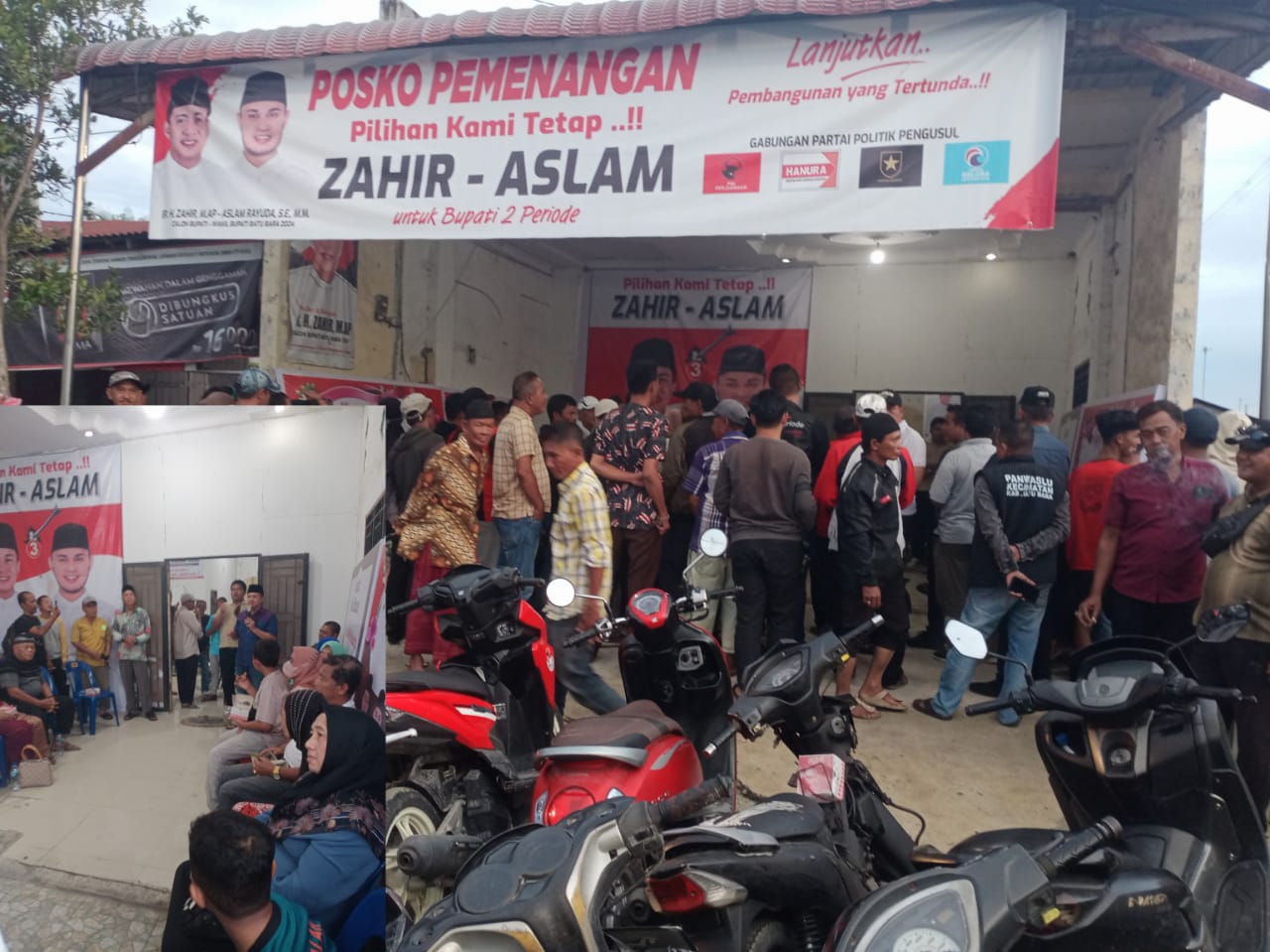 Jurnalpolri.com.Batu.Bara.Provinsi Sumatra Utara,Tiga Posko,Tim Pemenangan Partai Pengusung dan Tim Posko Pemenangan Relawan Di Kunjungi Calon Bupati No,3 Zahir tepat nya di Awali Posko Partai Pengusung ,Partai Hanura,yang kedua Posko Tim Relawan Zahir-Aslam Desa Mesjid lama,dan terakhir Posko Relawan Pemenangan Ok,Suhemi Tanjung Tiram tepat satu hari di kunjungi Zahir Selasa 14/10/2024 sekira pukul 17,18 s/d Selesai.