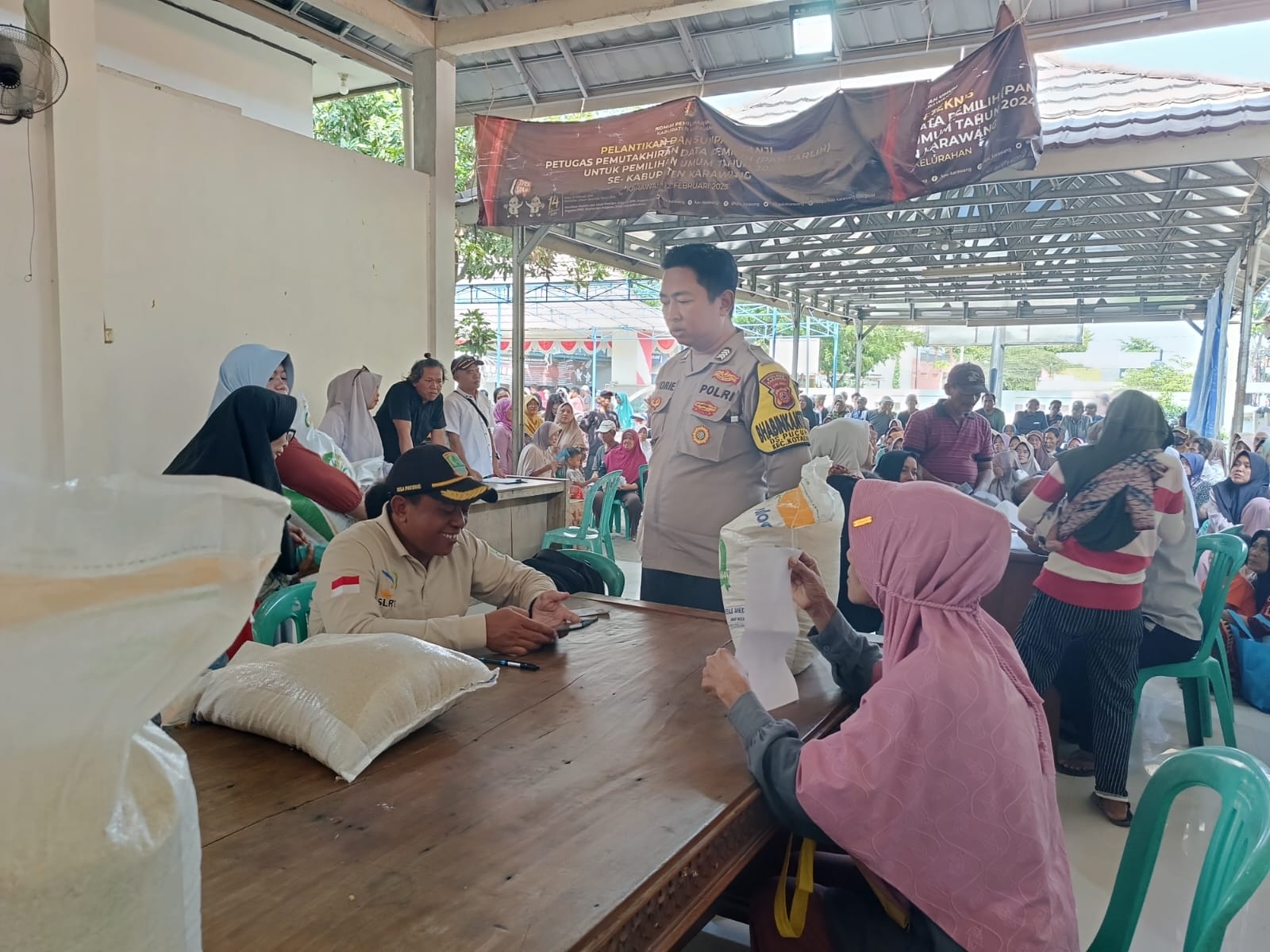 JP – KOTABARU KARAWANG – Bhabinkamtibmas Desa Pucung Polsek Kotabaru Polres Karawang Polda Jawa Barat Bripka Andrie Sustrianto, S.H. melaksanakan kegiatan monitoring dan pengawasan penyaluran bantuan Beras Cadangan Pemerintah (CBP) Badan Urusan Logistik (BULOG) di Desa Pucung kepada 1693 Keluarga Penerima Manfaat (KPM) pada Kamis (10/10/2024).