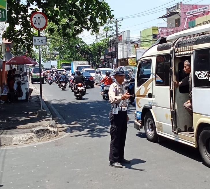 Pastikan Arus Lalulintas Lancar, Unit Lantas Polsek Antapani Laksanakan Pengaturan Arus Lalulintas.
