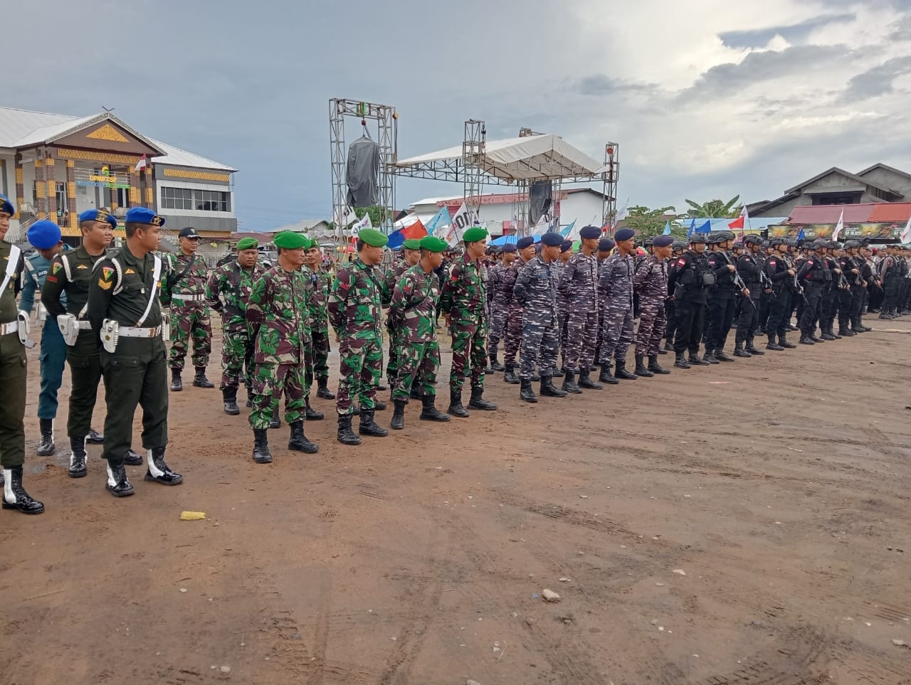 Personil gabungan mengisi titik ploating pengamanan di berbagai tempat di sekitar area lapangan, sedangkan personil Satuan Lalu Lintas bersama anggota DLLAJ Ketapang tampak dalam mengatur arus lalu lintas jalan raya di depan lapangan sepakat yang sempat menumpuk akibat memadatnya arus kendaraan warga yang ingin menghadiri acara kampanye.
