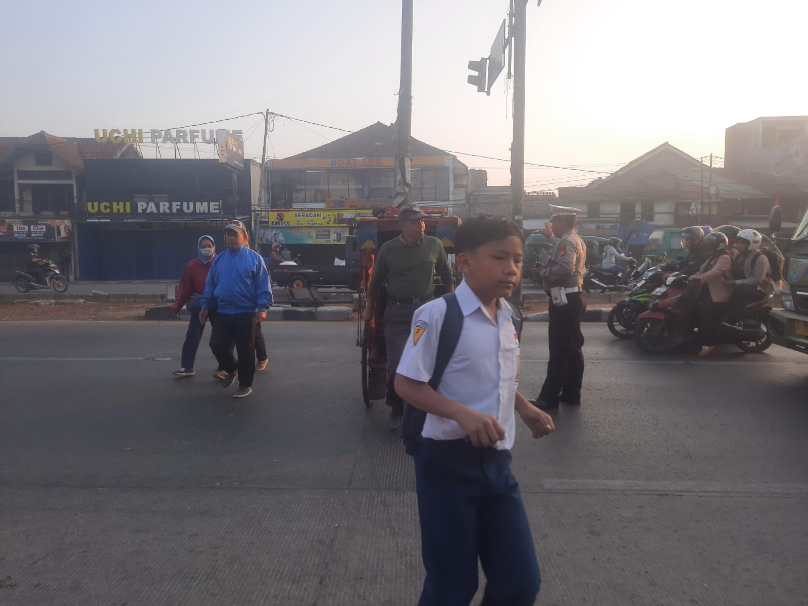 Pastikan kelancaran lalulintas, Unit Lantas Polsek Rancaekek pengaturan lalulintas serta bantu warga penyebranagan jalan