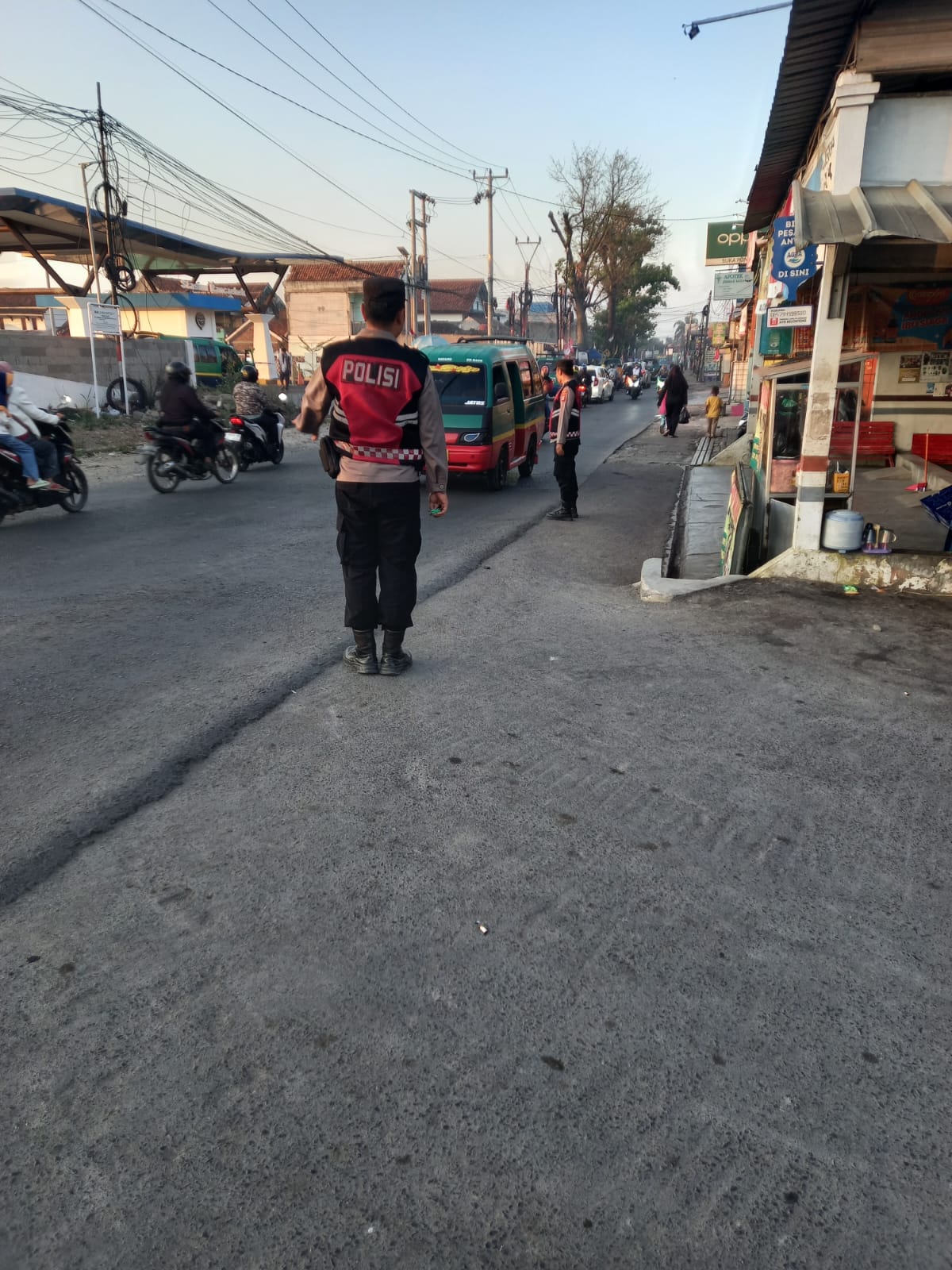 Personil unit samapta Polsek Rancaekek pelayanan pagi pengaturan lau lintas antisipasi kemacetan di sekitar perlintasan KA Rancaekek sebagai tindakan nyata dalam melayani, mengayomi dan melindungi masyarakat
