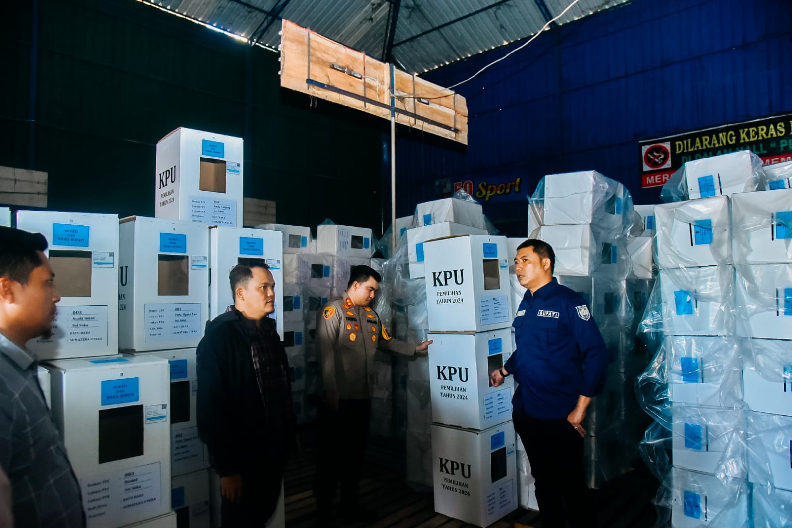 Jurnalpolri.com Batu.Bara Provinsi Sumatra Utara,Guna memastikan Kesiapan Pemilihan Kepala Daerah (Pilkada ) serentak di tahun 2024 berharap berjalan lancar ,Pejabat (Pj) Bupati Batu Bara Heri wahyudi Marpaung S.STP,M,A,P mengunjungi Gudang logistik KPU yang berada di Desa Sumber Padi ,Kecamatan Lima Puluh tepat nya pada.hari Kamis 14/11/2024.