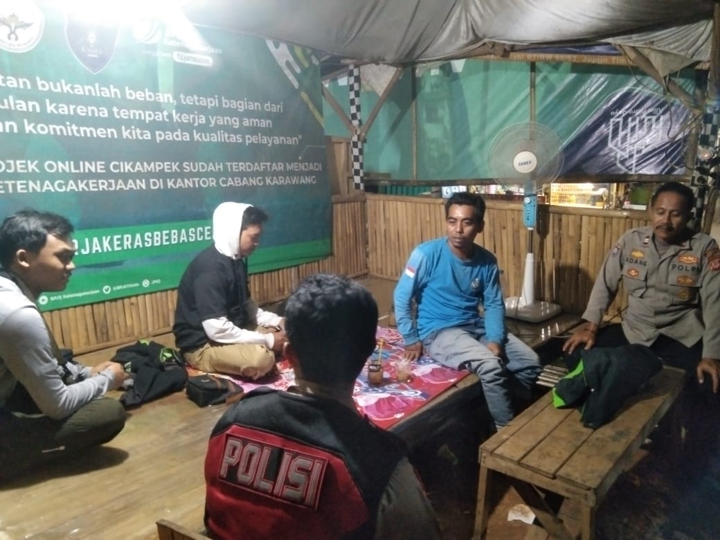 Personil Polsek Kotabaru melaksanakan patroli sambang di Poskamling Kp. Cibanggala, Desa Jomin Timur, Kecamatan Kotabaru, Kabupaten Karawang.