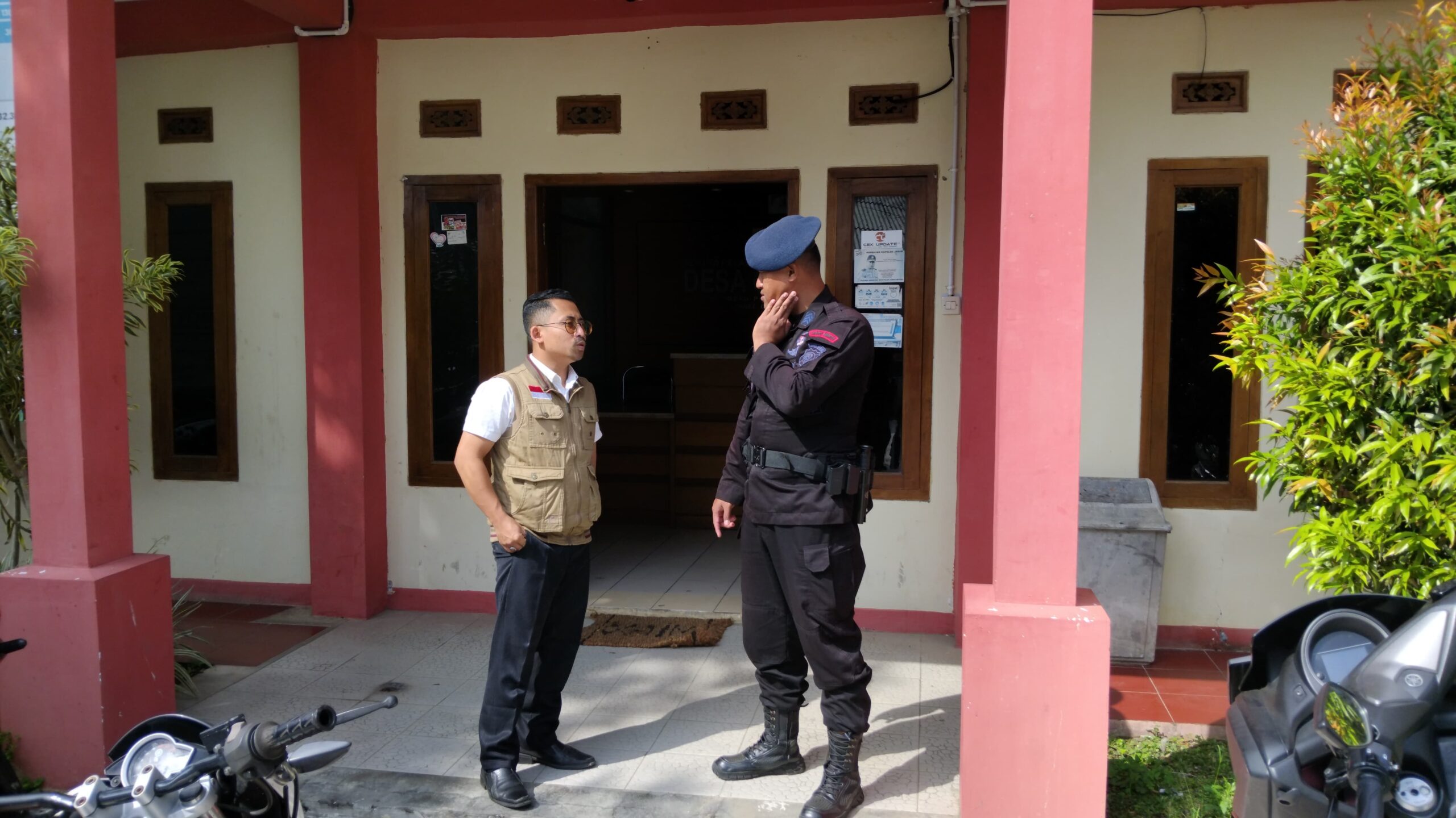 JP. Cianjur-Brimob Kompi 4B pelopor, Danru patroli Brigpol Eko Agung bersama 2 Personel lainnya melaksanakan sambang desa sekaligus memberikan himbauan Kamtibmas (Keamanan dan Ketertiban Masayarakat) kepada petugas yang beraktifitas di sekitar kantor desa Gadog, Rabu (25/09/2024) pagi.
