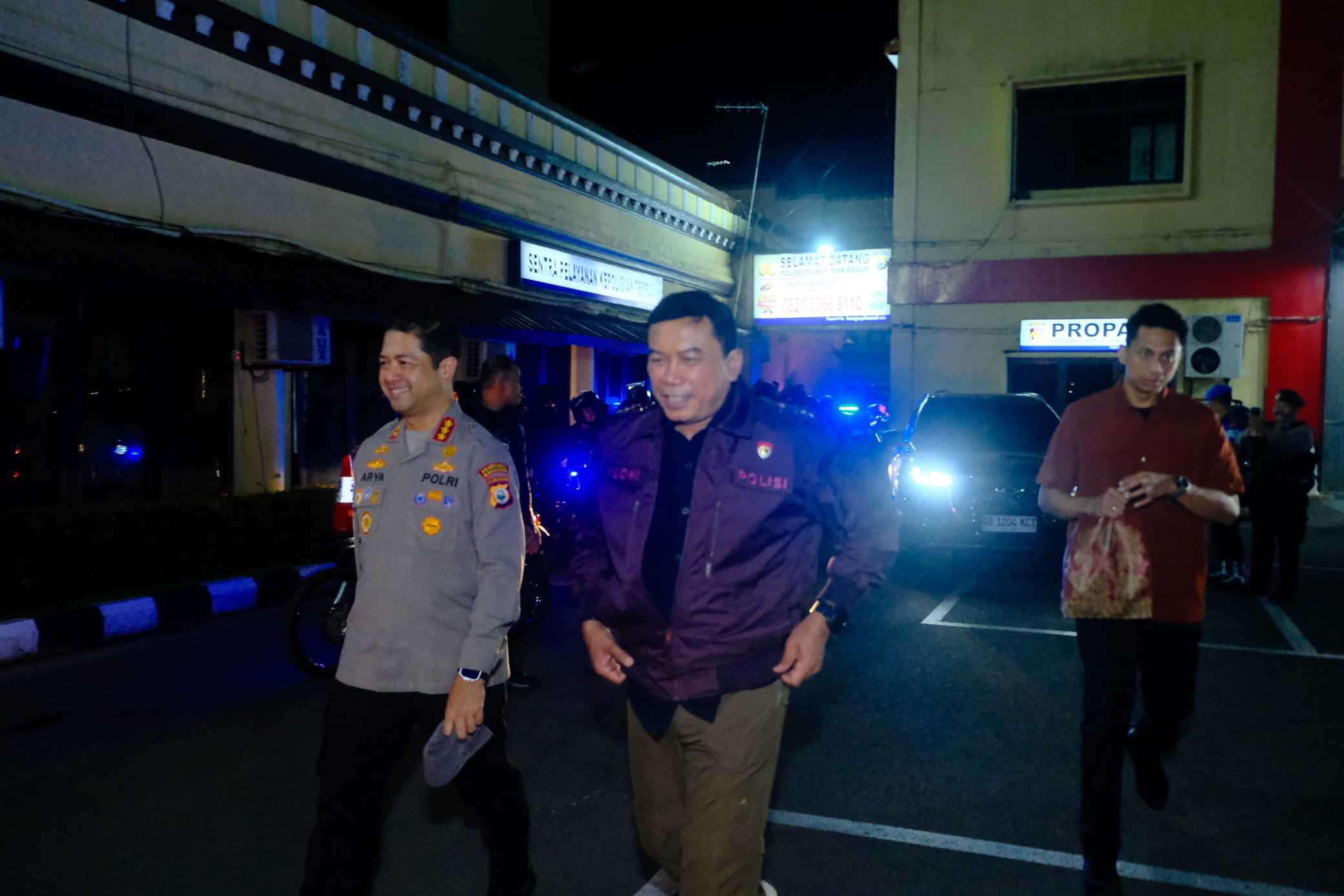Didampingi Kapolrestabes Makassar, Kombes Pol. Arya Perdana, Kabid Humas Polda Sulsel, Kombes Pol. Didik Supranoto, serta Kabidpropam Polda Sulsel, Kombes Pol. Zulham Effendi, Kapolda memastikan setiap sudut kota dalam keadaan aman.