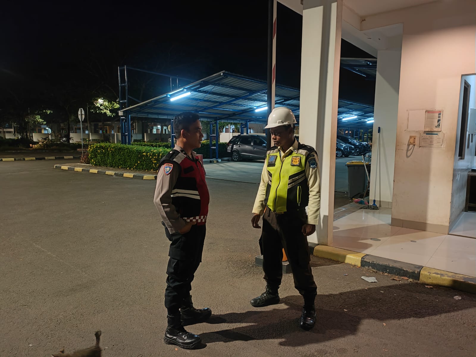 memberikan Pesan- Pesan Kamtibmas Kepada Security jaga, agar tetap waspada saat ada kendaraan masuk keluar di awasi serta tetap waspada kendaraan yang di parkir harap di kunci ganda.