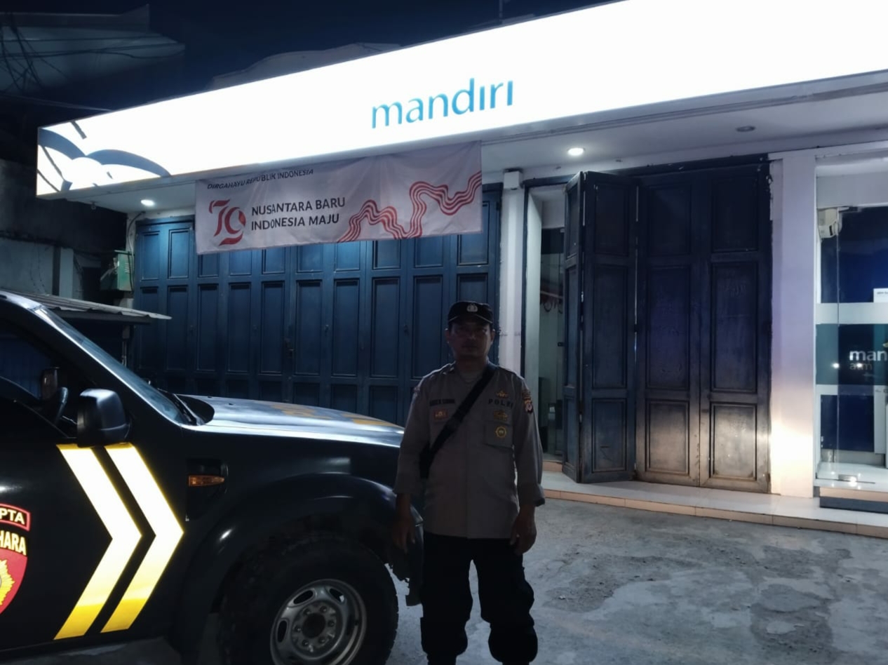 Patroli Prekat yang dilaksanakan anggota unit Samapta polsek Rengasdengklok Aiptu Deni Awaludin dan Aipda Audien Prasetyo menyasar obyek Vital dan Menyasar kantor bank Mandiri Kcp Rengasdengklok Desa Rengasdengklok Selatan Kec Rengasdengklok Dan memberikan Himbauan Kamtibmas kepada Anggota Scurity Bank Mandiri agar tetap waspada dalam menjalankan tugas, awasi gerak gerik orang-Orang yang mencurigakan.