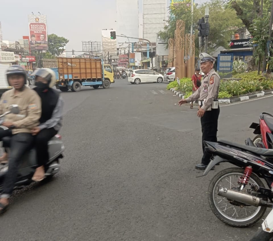 Antisipasi kemacetan sore hari, personil lalulintas Polsek Sukasari melaksanakan pengamanan jalur di titik rawan kemacetan Wilayah Hukum Polsek Sukasari Polrestabes Bandung.