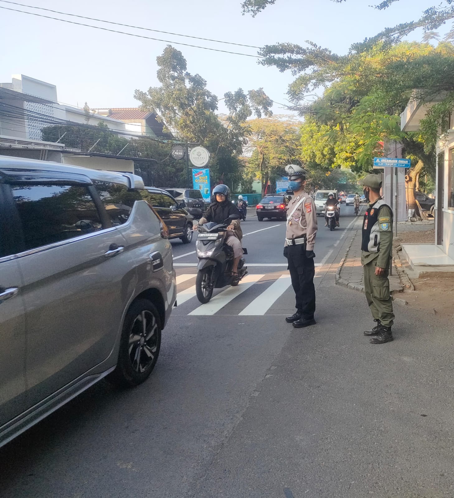 JP. Polrestabes Bandung, Polda Jabar- Polsek Arcamanik- Personel Unit Lalu lintas Polsek Arcamanik melaksanakan pengaturan arus lalulintas pagi hari di Jl. Purbasari-Golf Timur dan Pacuan Kuda-AH Nasution serta di beberapa titik rawan kemacetan kegiatan ini dilakukan secara rutin setiap harinya dengan kondisi kepadatan arus lalu lintas yang mengalami kepadatan pada pagi hari dimana sering terjadi peningkatan jumlah kendaraan yang melintasi jalan tersebut.