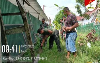 Sidrap, JURNALPOLRI.MY.ID – Senin pagi (19/5/2025), suasana hijau dan gotong royong terasa kental di Kelurahan Majelling Watang, Maritengngae. Di tengah deretan bibit pohon dan semangat warga, Batiter Kodim 1420/Sidrap, Pelda Adhi Warsita, memimpin langsung aksi penanaman pohon yang melibatkan personel staf Kodim dan masyarakat sekitar.