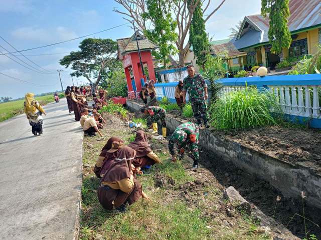 “Kita bersihin parit-parit ini supaya anak-anak nyaman belajar. Lingkungan yang bersih itu kunci buat suasana belajar yang enak,” ujar Pelda Gusti sambil memimpin langsung aksi tersebut.