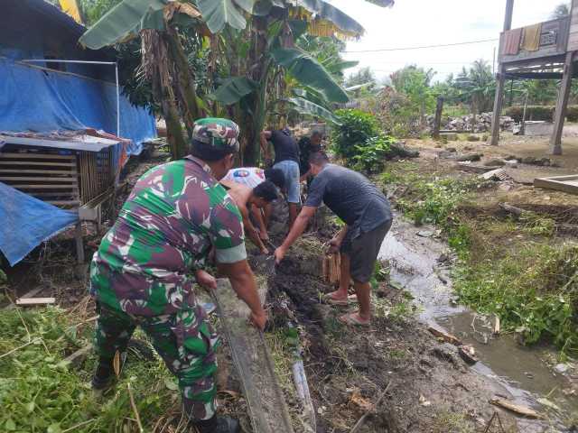 Sampah plastik, batang pohon yang membusuk, hingga rerumputan liar yang telah lama bersemayam di saluran air, satu per satu diangkat dan dibersihkan. TNI dan warga bahu-membahu, menciptakan harmoni dalam setiap gerakan.