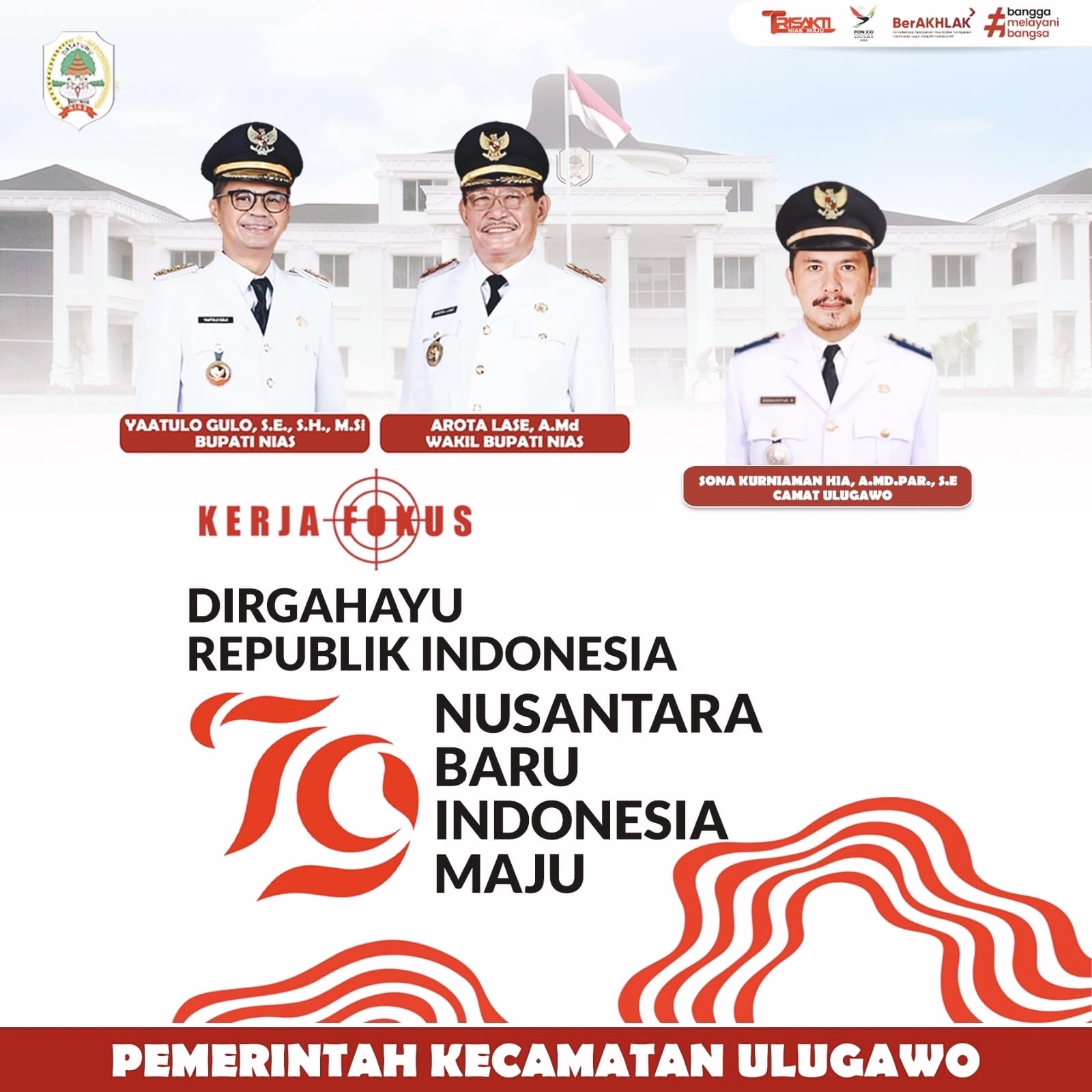 Pemerintah Kecamatan Ulugawo Mengucapkan Selamat Hari Kemerdekaan Republik Indonesia Yang Ke-79 ” Nusantara Baru Indonesia Maju”