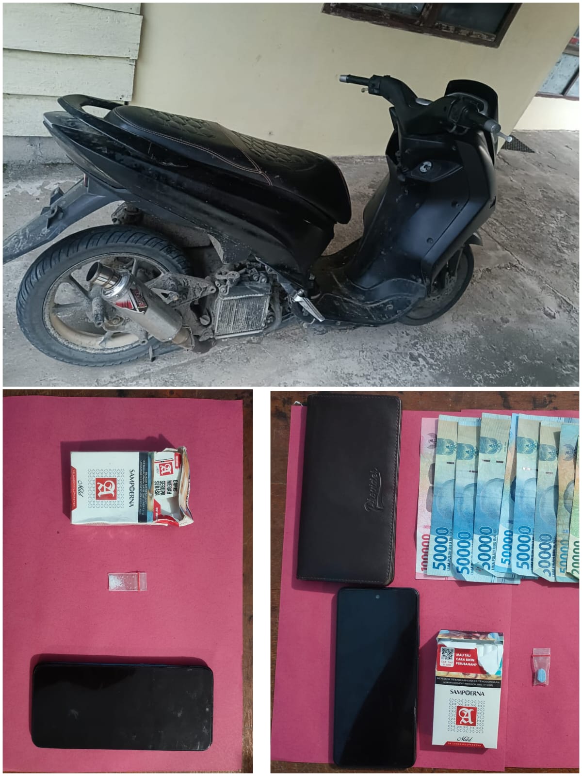 “Adapun Barang Bukti yang diamankan Polisi berupa Satu Paket Narkotika Jenis Sabu Dalam Plastik Klip Bening Ukuran Kecil, Berat Kotor 0,16 Gram, Satu Unit Hand Phone merek Realme warna Biru, Satu Unit Sepeda Motor merek Yamaha Lexi tanpa Nopol warna Hitam dan Satu Bungkus rokok merek Sampoerna,” rinci Kapolsek.
